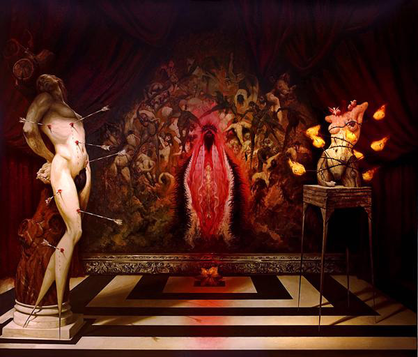 On entering you will encounter surreal performance dioramas, perhaps a blasphemous last supper or a filly put out to pasture. You might be led astray by the Queen and her Bunnies or find yourself being pleasured by the readings of the caged nightingale or delightfully tortured by the butterfly kiss of the whip.